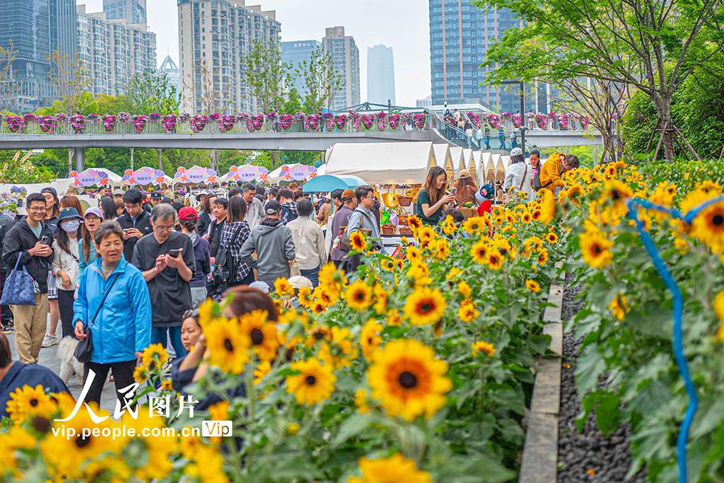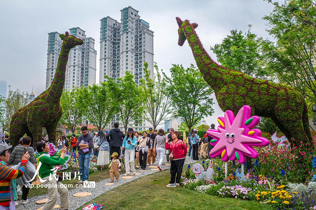 4月19日,2026上海国际花卉节静安分会场人潮涌动,市民赏花游玩,乐享周末时光。