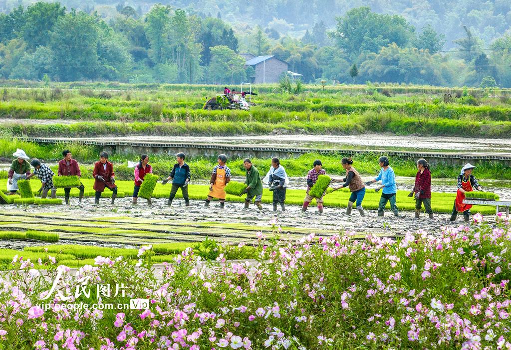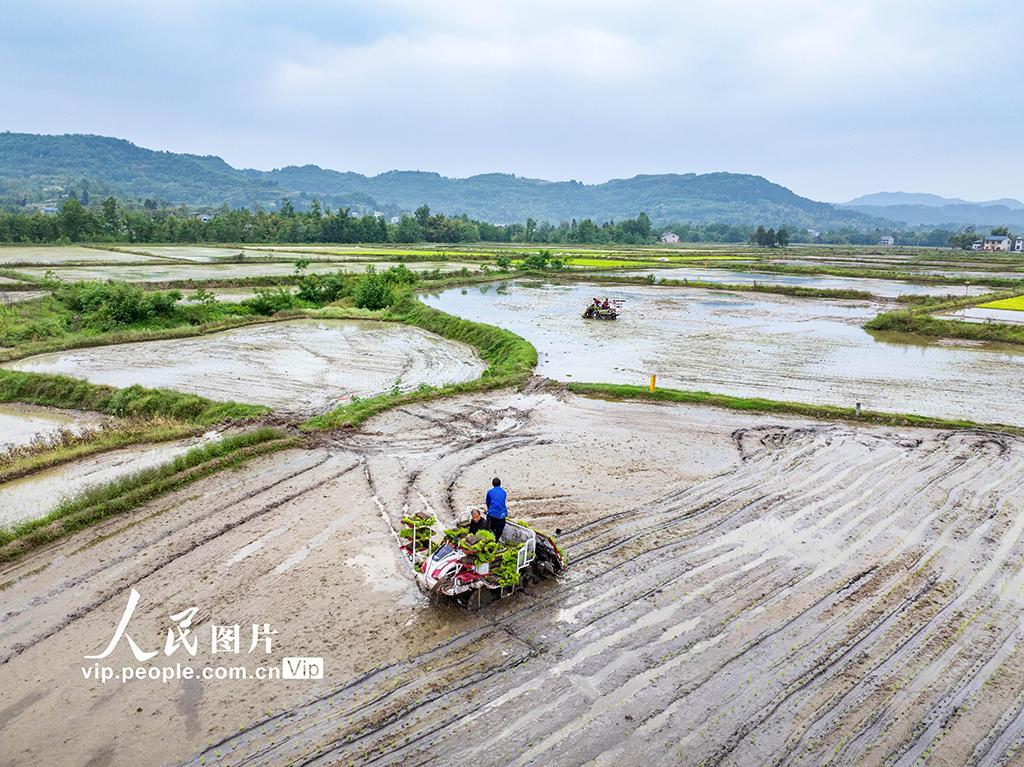 谷雨时节,四川广安区的农民抢抓农时,开展整田、起秧、插秧等农事,田间地头一派繁忙景象。张国盛摄