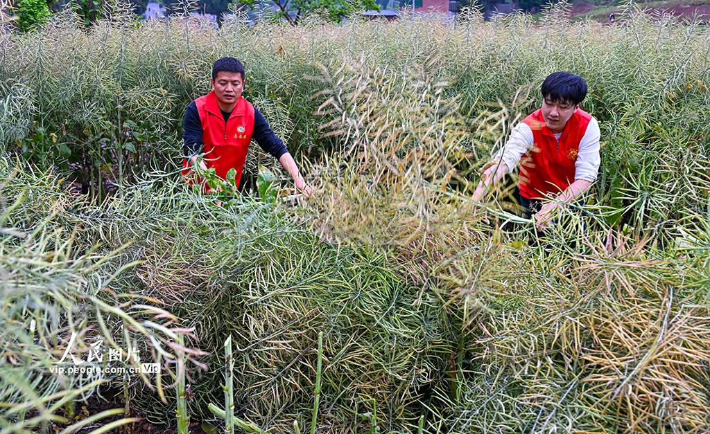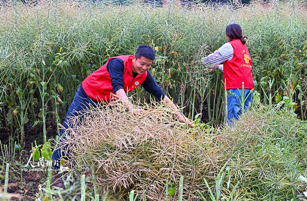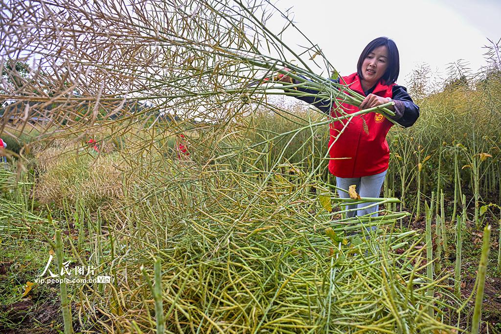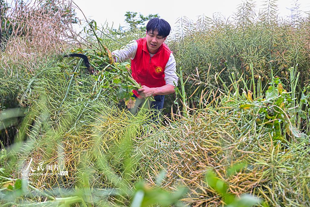 连日来,四川眉山仁寿县宝马镇组织党员、干部和志愿者组成助农服务队,深入田间地头,帮助缺乏劳动力的农户抢收抢种,助力春耕生产。潘帅摄